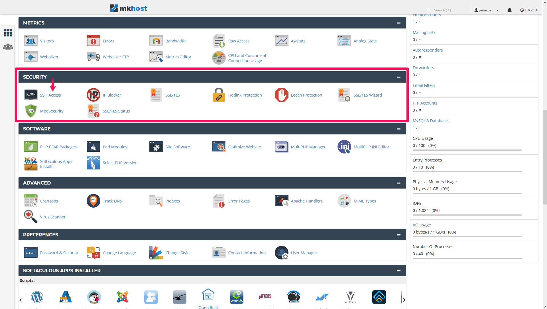 SSH access takes place using security login keys. To create the keys for communication, you need to log in to your user profile (cPanel). Then follow these steps: