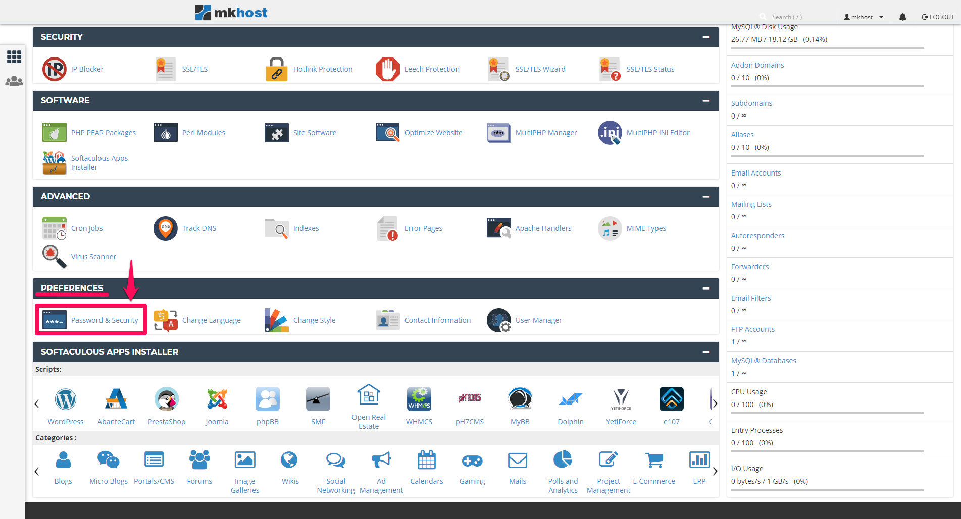 Sign in to your cPanel account, tvojotdomen / cpanel, in the Preferences section, click Password & Security