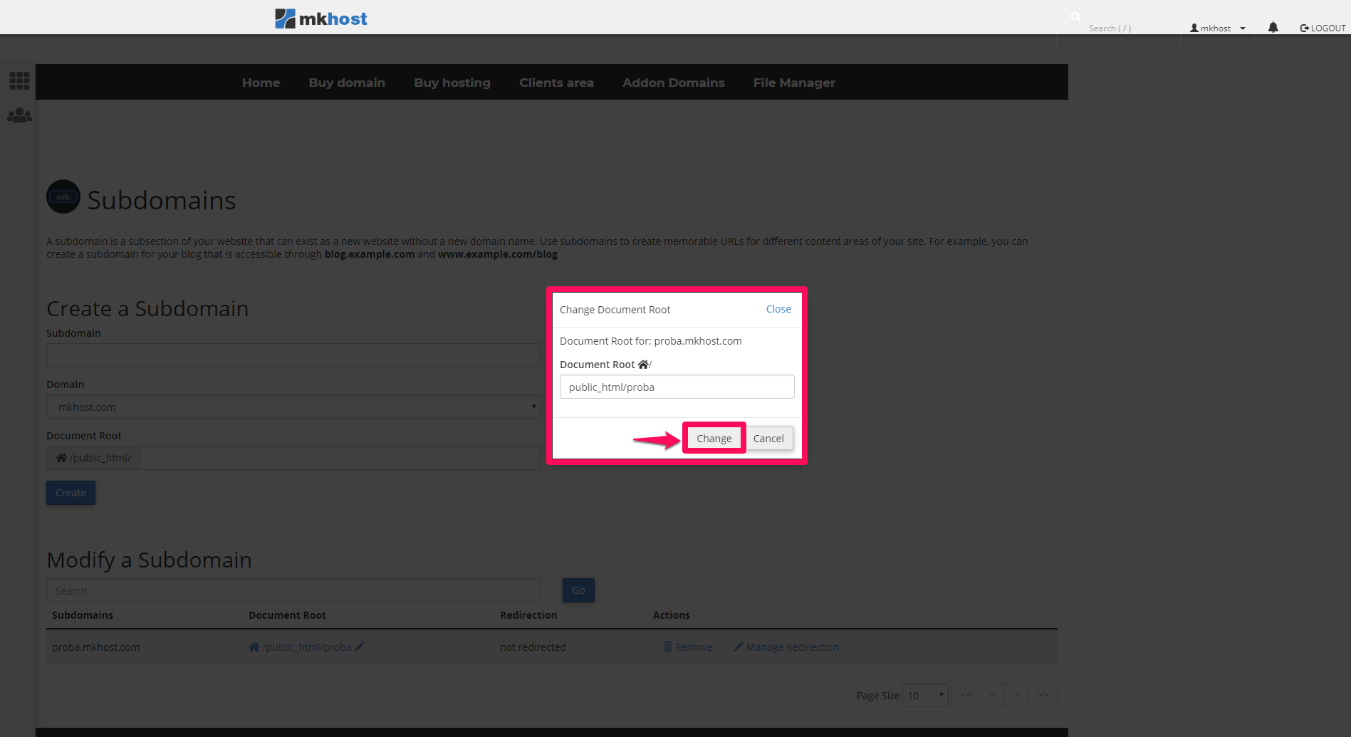 The example given in the image, the folder on the subdomain proba.mkhost.com.mk is placed in the public_html folder. If you do not fill in the Document root field, it will automatically be filled and the subdomain folder will be in the home directory (/).