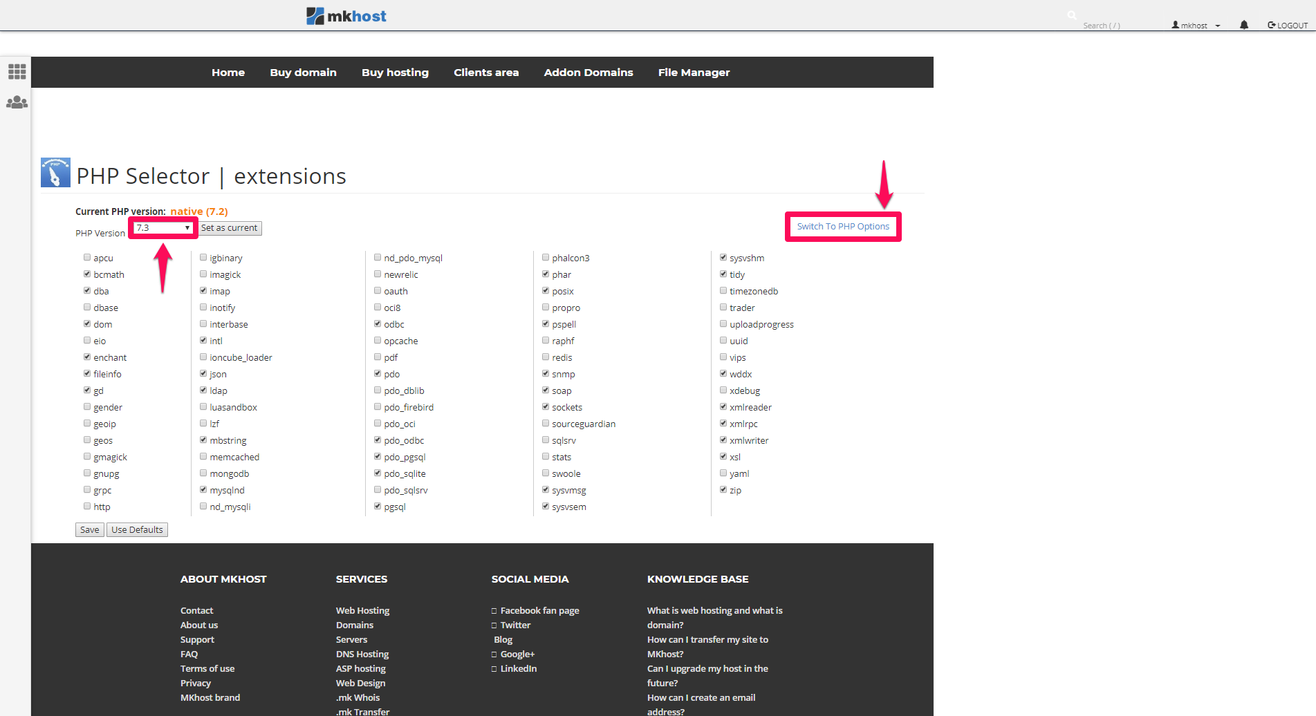 In the newly opened window you can change the PHP version and change some settings. Some of the parameters you can change will appear. Click on whoever you want to change, enter the new value, and then click Save. After saving the changes click on Switch to PHP Options.