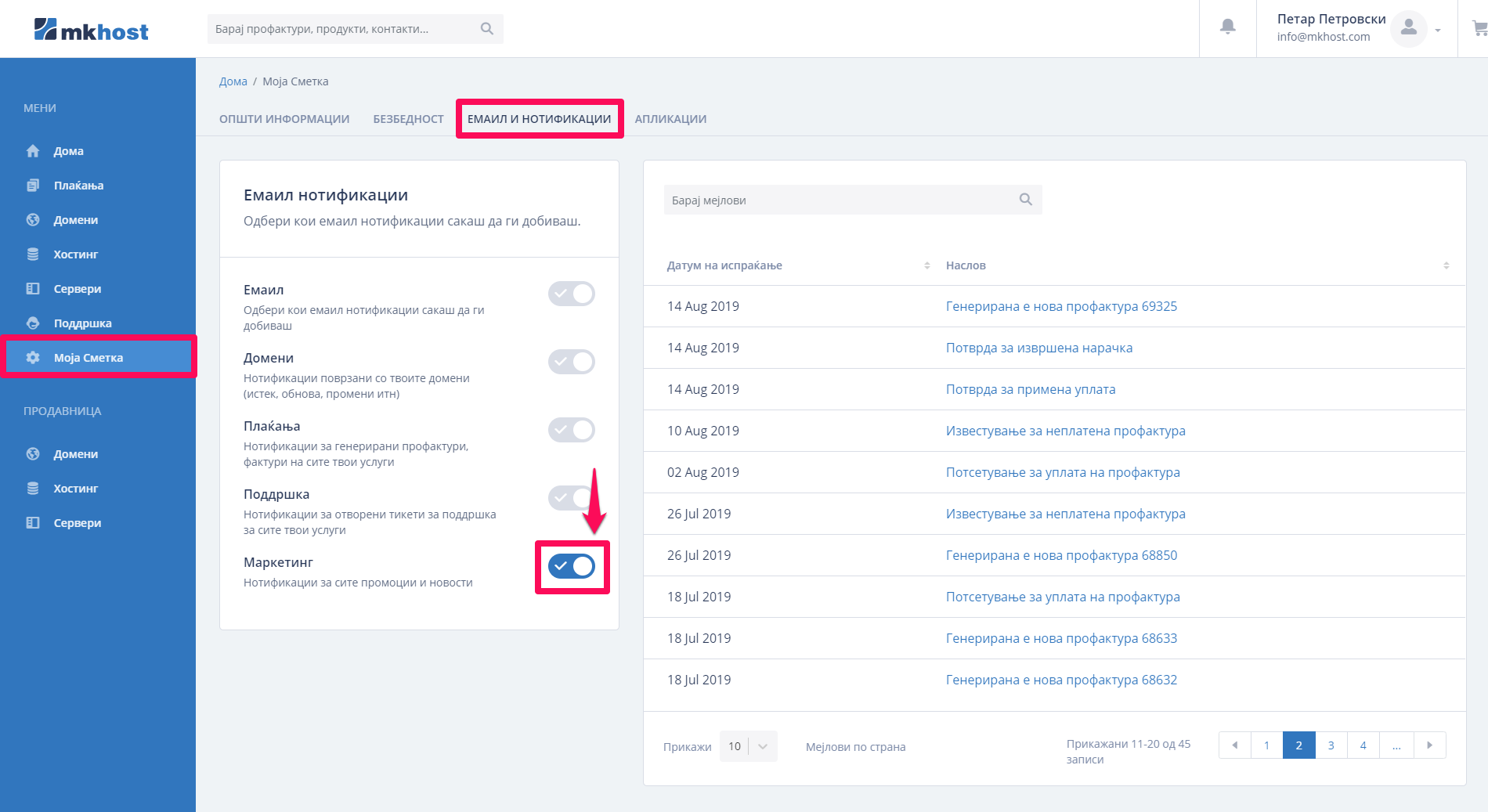 Како корисник на нашите услуги, се грижиме секогаш навремено да бидеш известен за сите случувања, новости и информации околку услугите кои ги користиш. Поради тоа, испраќаме меил известувања на меилот кој е оставен на твојот кориснички профил.