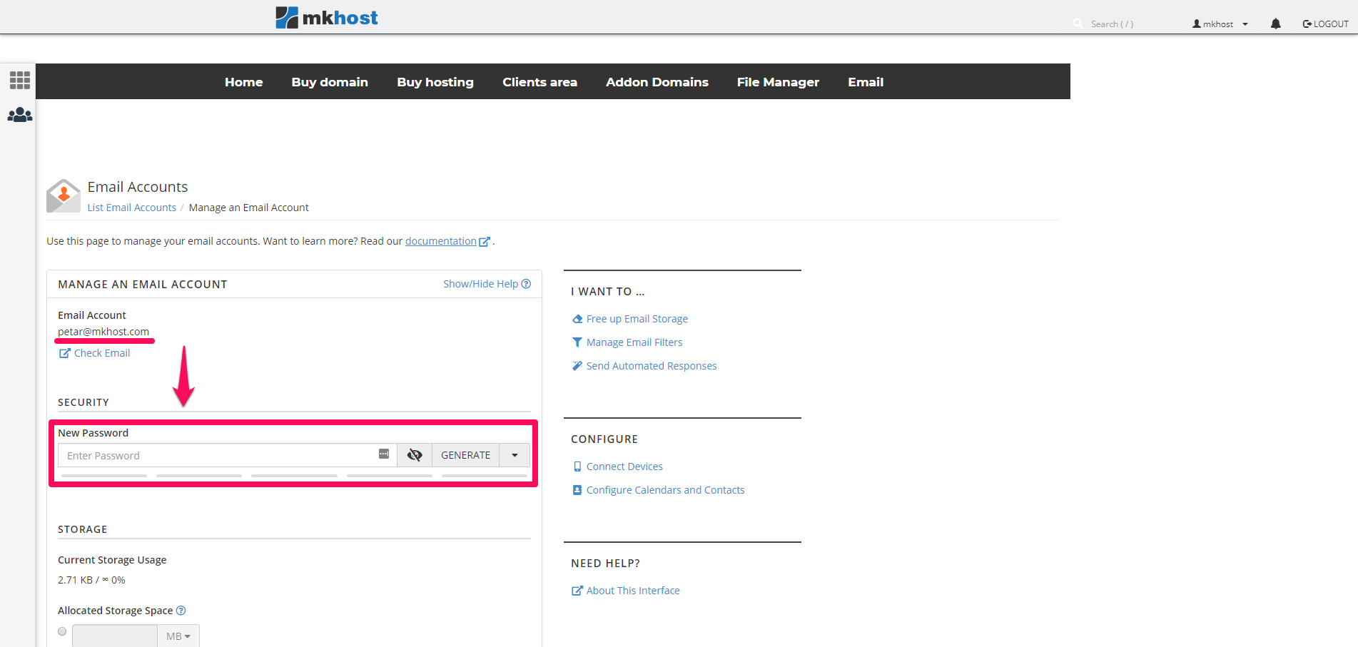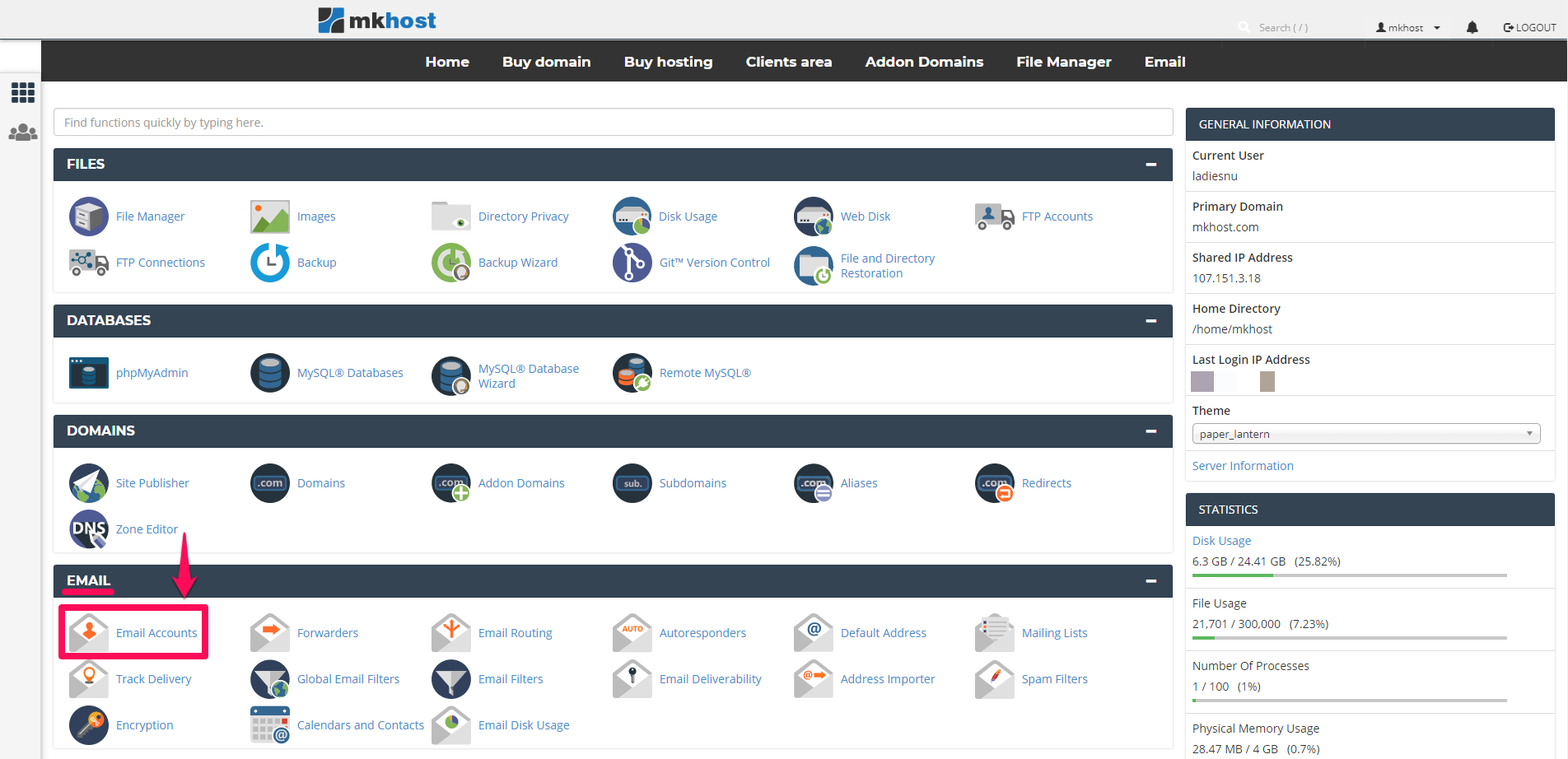 За да промениш лозинка на некоја емаил адреса, треба да се најавиш на твојот cPanel акаунт и Во делот Email кликни на Email Accounts