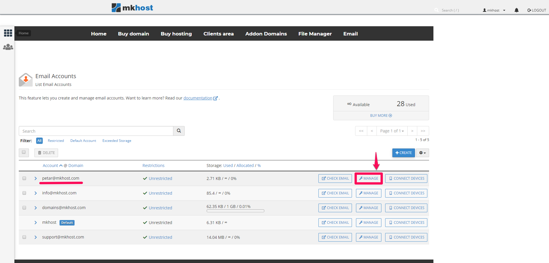 Ќе се отворат сите твои емаил адреси кои ги имаш креирано на твојот хостинг.